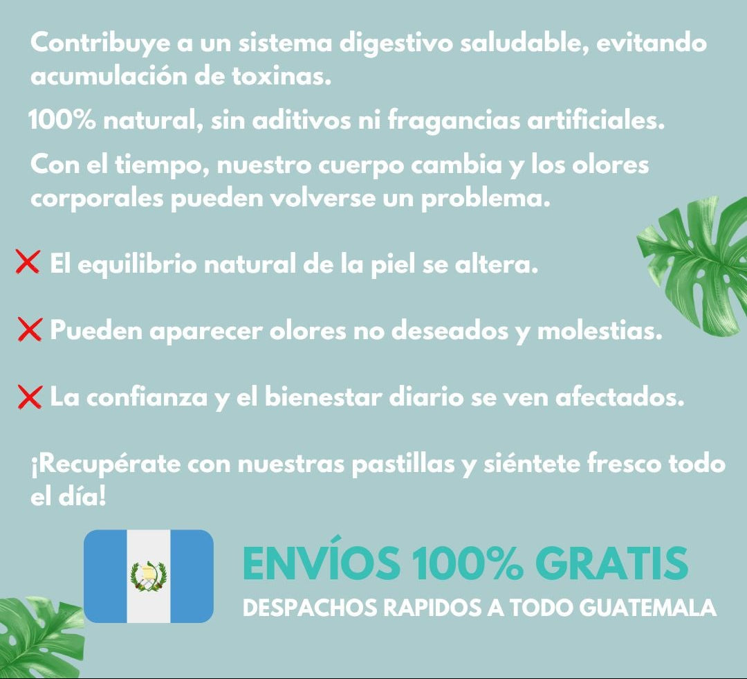 La mayoría de los usuarios reporta sentir una reducción del olor corporal en 3 a 7 días de uso continuo. Sin embargo, los resultados pueden variar según el metabolismo, la dieta y la hidratación de cada persona. Para mejores resultados, se recomienda consumo diario y constante.