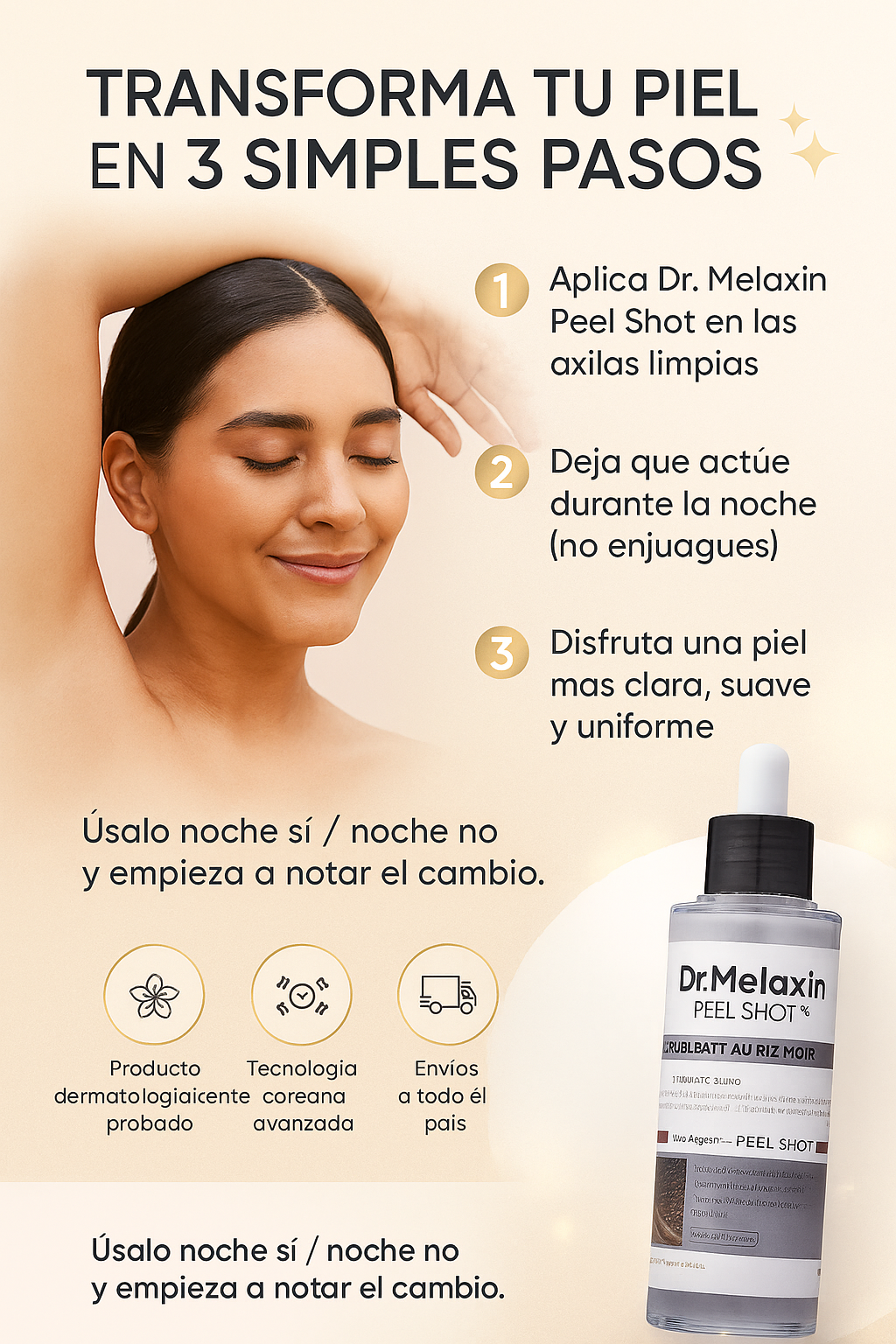 No. El Dr. Melaxin Peel Shot se absorbe completamente y actúa durante la noche. Solo limpia la zona antes de aplicarlo y no lo retires. Por la mañana, usa un hidratante ligero y protector solar en la zona para mantener los resultados.