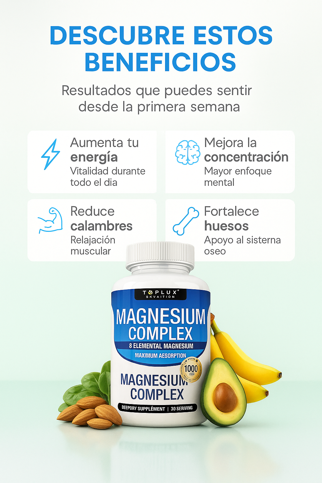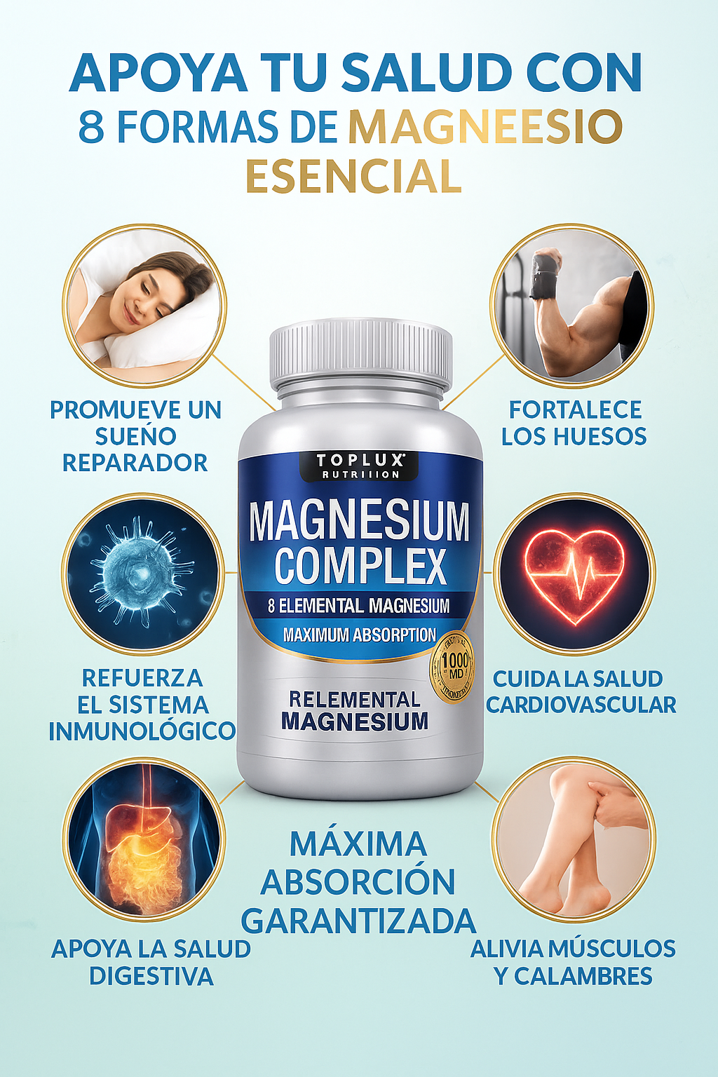 Sí. El Magnesium Complex 8 Elemental es compatible con la mayoría de los suplementos (como colágeno, vitamina D, zinc o calcio).